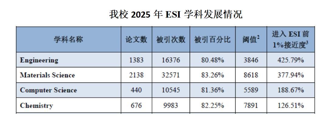 聚焦“百亿工程”,助推学科提升。2025年是best365官网“百亿工程”建设收官之年,在校党委和校行政的领导下,在学校相关部门和各学院的大力支持下,圆满完成各项任务,引进和培育5名国家级高层次人才,获批共建先进不锈钢国家重点实验室,获批机械专业博士学位授予权,在国家级重大科研项目和科研成果等方面取得显著成效,优势学科和潜力学科内涵建设实力显著提升,工程学、计算机科学、材料科学和化学4个学科在ESI全球前1%学科的位次持续提升。