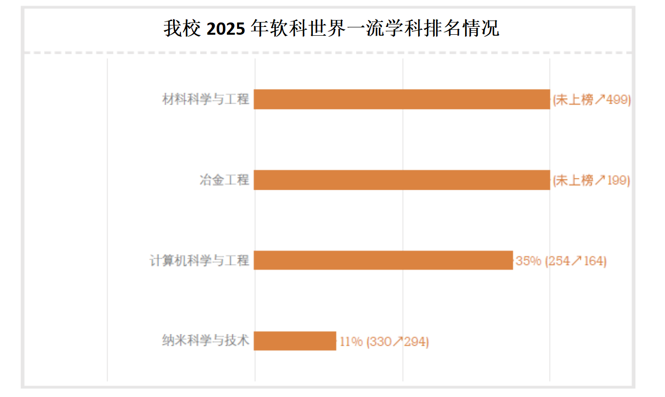 强化内涵建设,学科再创佳绩。以学校“十四五”学科建设目标为牵引,以学科团队和学科群建设为抓手,以学科建设项目和学科建设经费为支撑,以学科数据库建设为手段,以建强高峰学科、拓展高原学科、扶持基础学科、融合人文社科学科、培育新兴学科为路径,加强学科内涵建设,助推学科建设高质量发展。2025年“软科世界一流学科排名”中,best365官网上榜学科从2024年的2个增至4个。计算机科学与工程、纳米科学与技术学科排名持续提升。计算机科学与工程连续4年进入排行榜;纳米科学与技术连续3年进入排行榜;冶金工程、材料科学与工程学科首次跻身榜单。其中,冶金工程以第199名的佳绩跃居全球前200名。