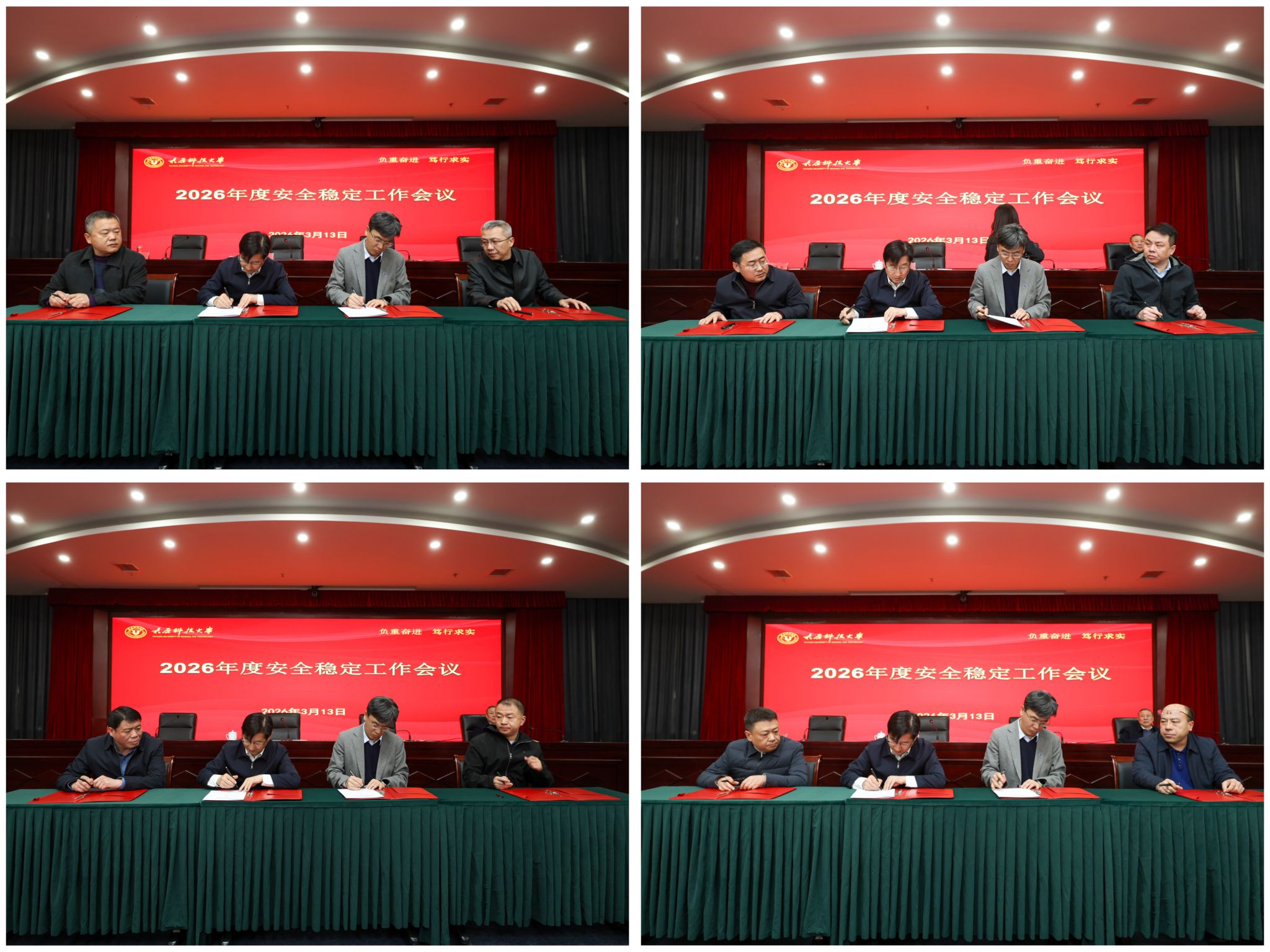 会议指出,过去一年,学校始终坚持把安全稳定工作放在首要位置来抓,加强分析研判、完善责任体系、强化督导检查,为学校各项事业的改革和发展、“十四五”圆满收官营造了良好环境。2026年是“十五五”规划开局之年,也是学校推进高质量发展的关键之年,做好全年学校安全稳定工作,任务艰巨、责任重大。全校上下要时刻绷紧安全稳定这根弦,始终保持头脑清醒,坚持问题导向,增强风险意识,坚决守住守牢校园阵地。